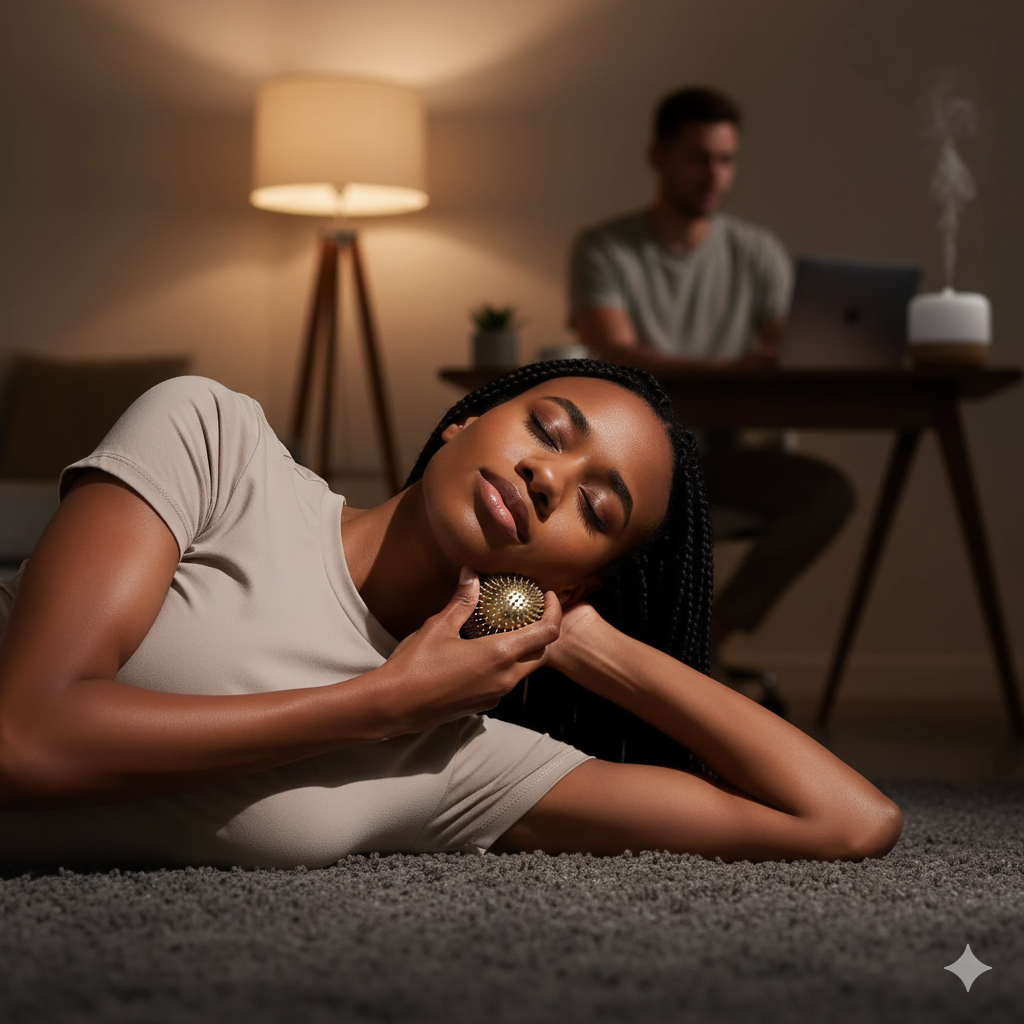 En quelques minutes seulement, elle aide ton corps à relâcher les tensions — où que tu sois, quand tu veux.Fais-la rouler entre tes mains, laisse-la glisser sur les zones crispées… et sens ton corps se détendre instantanément.