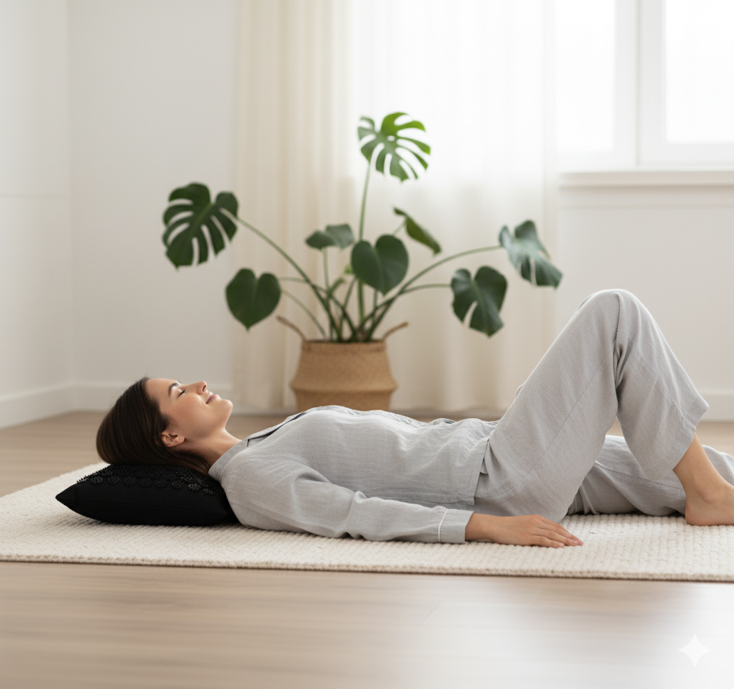 Tu peux aussi utiliser le coussin en position assise pour te détendre au niveau des lombaires. Ta créativité n'a pas de limites.